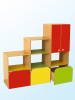 изготовлен из ЛДСП, торцы облицованы кромкой ПВХ 0,4 мм и 2 мм. Состоит из 3 секций: секция с выкатным ящиком и 2 дверями 480х400х1300; секция с выкатным ящиком и 2 полками 480х400х1000; секция с выкатным ящиком и полкой 480х400х700. Выкатные ящики снабжены колесными опорами