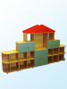 изготовлена из ЛДСП, торцы облицованы кромкой ПВХ 2 мм. Состоит из трех секций: средняя секция имеет 6 ниш закрытых дверями и 11 открытых ниш для хранения игрушек, вверху двухсторонняя надстройка, имитирующая крышу домика; боковые секции имеют по 2 открытых ячейки и завершаются двумя закругленными полочками. Стенка снабжена ножками-опорами регулируемыми по высоте, на дверях установлены ручки-кнопки