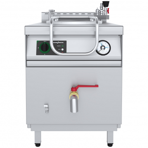 Котел состоит из варочной емкости со столешницей, паровой «рубашки», крышки с механизмом поднимания, облицовочных панелей, теплоизоляции и основания. Столешница, варочная емкость, парогенератор, «рубашка» паровая, крышка с ручкой, облицовочные панели сбоку и спереди выполнены из нержавеющей стали. Спина и основание