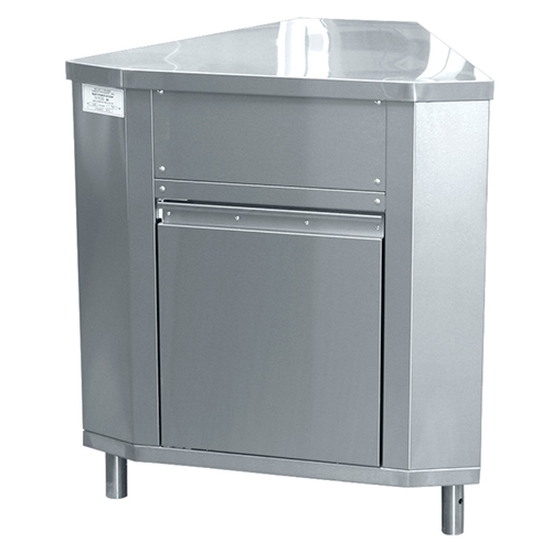 Модуль поворотный внутренний имеет угол поворота 45°, не имеет направляющих для подносов и предназначен для формирования изгиба в структуре линии раздачи. Модель оснащена регулируемыми по высоте ножками.