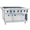 Размеры чугунных конфорок 295x417 мм. Температура рабочей поверхности конфорки 480°C. Время разогрева до max t 30 мин. Внутренние размеры жарочного шкафа 538x535x290 мм, c 3 противнями размером 530х470х30 мм, из черного металла. Рабочий диапазон температуры духовки 20-270 С, терморегулятор, регулируемые по высоте ножки.