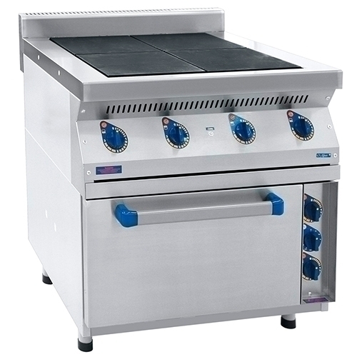 Размеры конфорок 300х300 мм, Температура рабочей поверхности конфорки 480°C, Время разогрева до max t 25 мин, Внутренние размеры жарочного шкафа 510х538х290 мм, в комплекте противень и решетка размером 530х470 мм, Рабочий диапазон температуры духовки 20-270 С, терморегулятор, воздуховод в комплекте, регулируемые по высоте ножки.