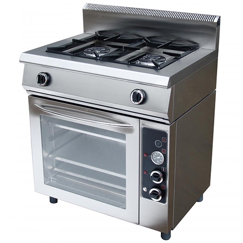 Две профессиональные горелки класса Heavy Duty с раздельной регулировкой горения внутреннего и внешнего кольца пламени. Газовая мощность 13,5кВт. Автоподжиг. Газконтроль. Комбинированная (сверху ТЭН, снизу горелка). Духовка со стеклянной дверцей, подсветкой и таймером. Полностью из нержавеющей стали. Комплектуется 1 противнем G 1/1(325x530) и 1 решеткой.