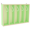 Вешалка для полотенец настенная 5-секционная. Состоит из корпуса, поделенного на пять отделений перегородками. В каждом отделении имеется крючок для полотенца. Вешалка выполнена из ЛДСП толщиной 16мм. Торцевые части корпуса и перегородок окантованны кромкой ПВХ, толщиной 2 мм. Цвет ЛДСП : салатовый синий, ольха, бук.