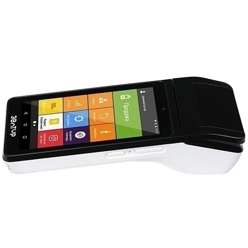 Эвотор 5 — онлайн-касса для курьерской доставки, торговли на выезде, в небольших магазинах и на рынках. Это самая легкая и компактная модель: весит 400 г, помещается в карман куртки. Соответствует 54-ФЗ: подключается к любому оператору фискальных данных и передает данные в ФНС.