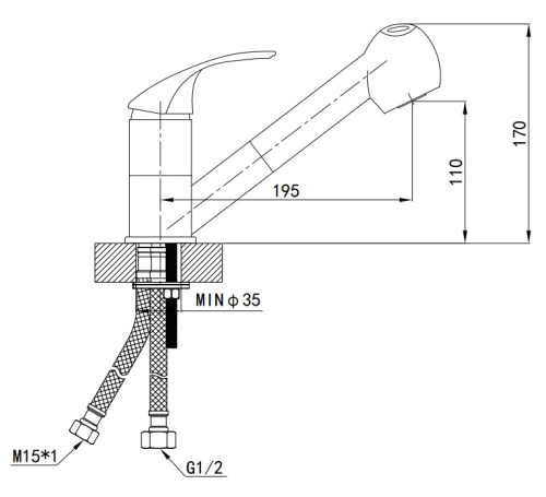 2-х функциональная излив-лейка с пластиковым аэратором и гибким шлангом 1,2 м