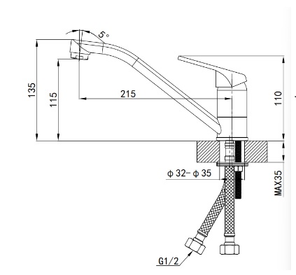 Диаметр монтажного отверстия - 35 мм