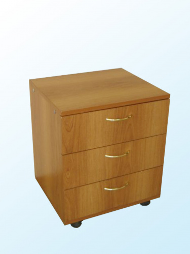 поставщик ЭМС - изготовлена из ЛДСП, торцы облицованы кромкой ПВХ 0,4 мм, топ тумбы облицован кромкой ПВХ 2 мм. Тумба имеет 3 ящика на роликовых направляющих, на панелях ящиков установлены ручки-скобы металлические. Тумба снабжена колесными опорами