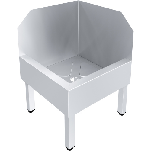 Сварная емкость выполнена из нержавеющей стали марки AISI 430, толщиной 0,8 мм. Размеры ёмкости 530х530х150 мм. С ботом, высотой 300 мм . Без полки. Каркас ванны выполнен из профильной нержавеющей трубы 40х40 мм. Сливное отверстие диаметром 52 мм. Ножки ванн снабжены регулирующими опорами, позволяющие компенсировать неровности пола при установке. Изделие поставляется в собранном виде. Упаковка стрейч пленка.